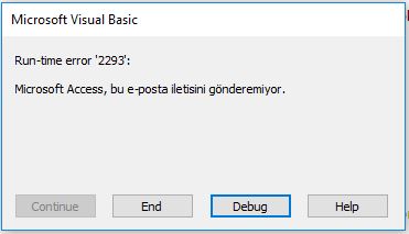 Accessde yaptığım programda kaydetme ve mail göndermeye yarayan bir buton için yazdığım kodlarda mail gönderme işlemi öncesinde bir mesaj kutusu çıkıyor. Çıkan mesajda izin ver ve reddet butonları var. İzin ver butonuna basıldığında sorunsuz olarak mail gönderme gerçekleşiyor ama reddet butonuna basıldığında program debug hatası verip kullanıcıyı kodların olduğu sayfaya yönlendiriyor. Bu durum nasıl engellerim? Yardım etmenizi rica ederim..