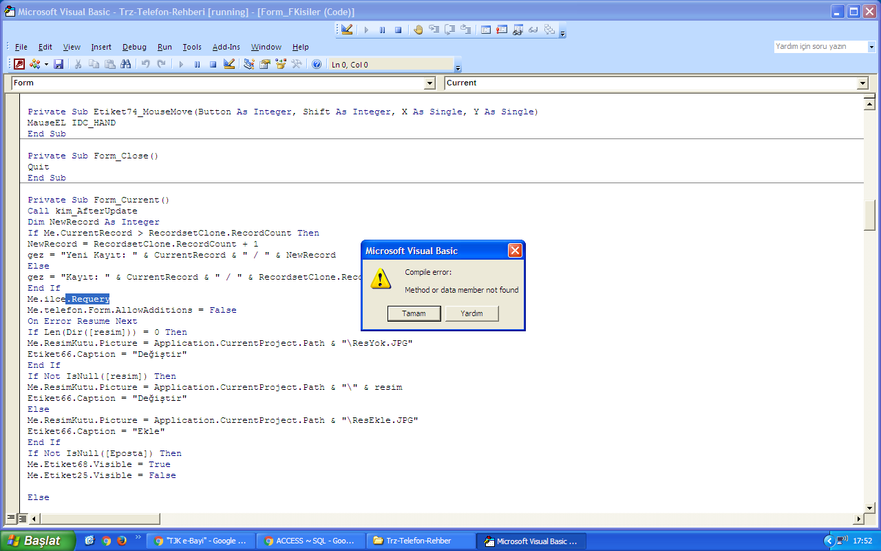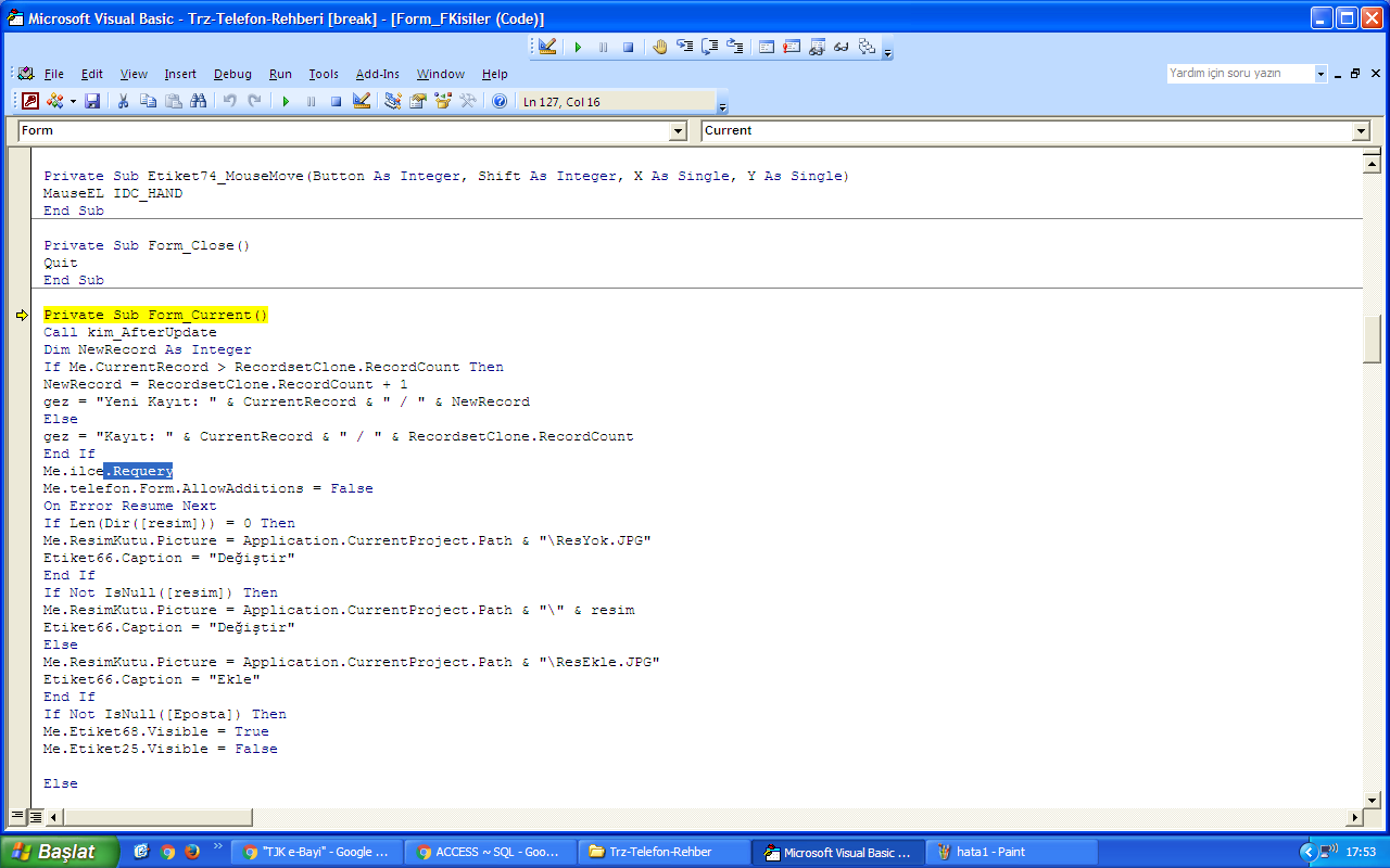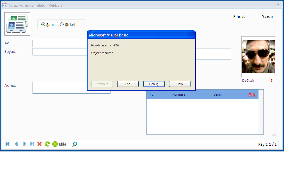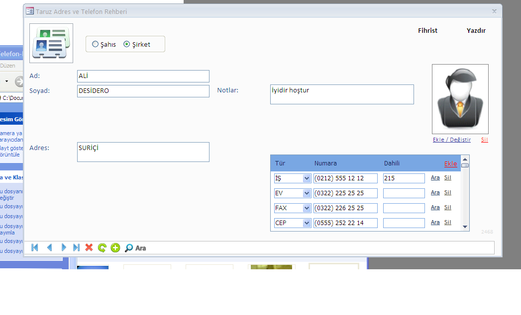 şimdi acess bilmedigimiz için veya bu tarz programlama işini bilmedigimiz için evet kafaya takacak aslında pek bişi yok. ama bu telefon programı bana lazım olan bişi ve istedigim tek şey taruz beyin çalışması tablo örneği olarak istediğim özelliğe sahip olması ve mail şehir ilçe vergi dairelerinin oldugu kısımların kaldırılarak kullanması. bunun içinde mesela sorunumu yazdıktan sonra tabloda belirttiğim kısımlar kaldırılarak verilmesi değilde problemin paylaşılarak çözüme ulaştırılması gibi bir yöntem uygulandıgından ki (site amacına uygun olarak bu düşünce sistemi sanırım dogrusu) işim uzadı