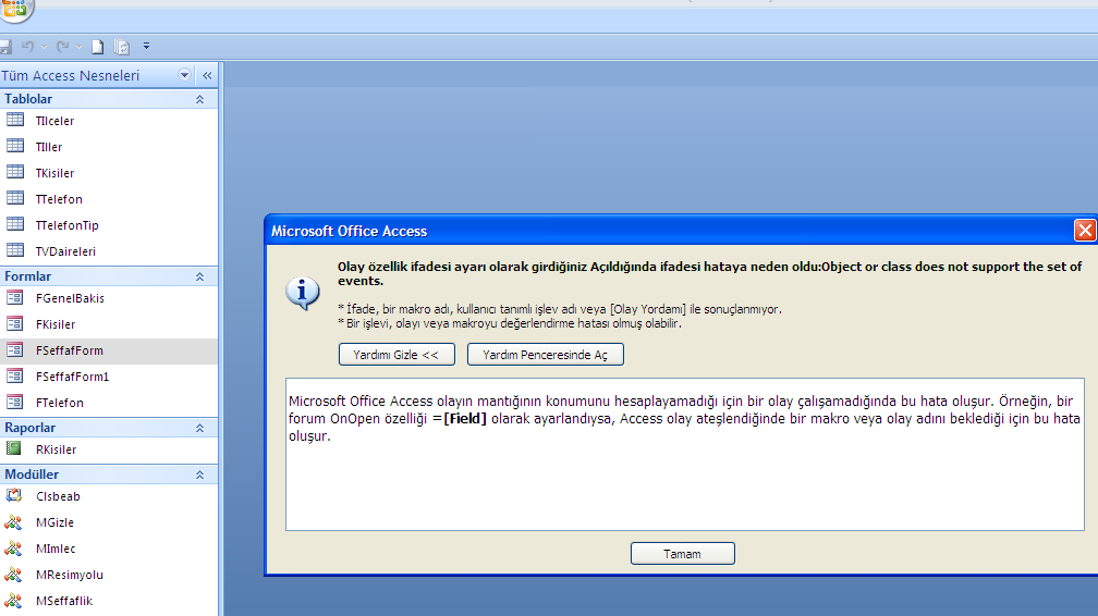 FKisiler formunda ki kim nesne guncellemede ki etiket9.top=2892 olan satiri silininiz.