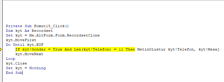 Yapmak istediğim alt formdan verileri alarak toplu sms göndermek.