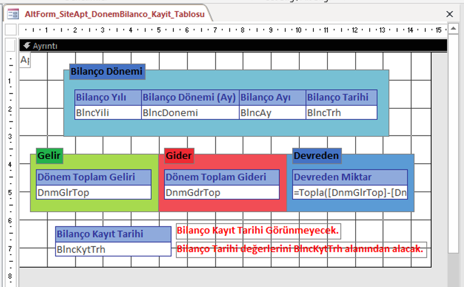 Bu örnekte ben Bilanço Kayıt Tarihi alanını ölçüt olarak kullandım. Formun resmini ekledim. Konuyla ilgili arkadaşlardan destek bekliyorum. Teşekkür ederim.