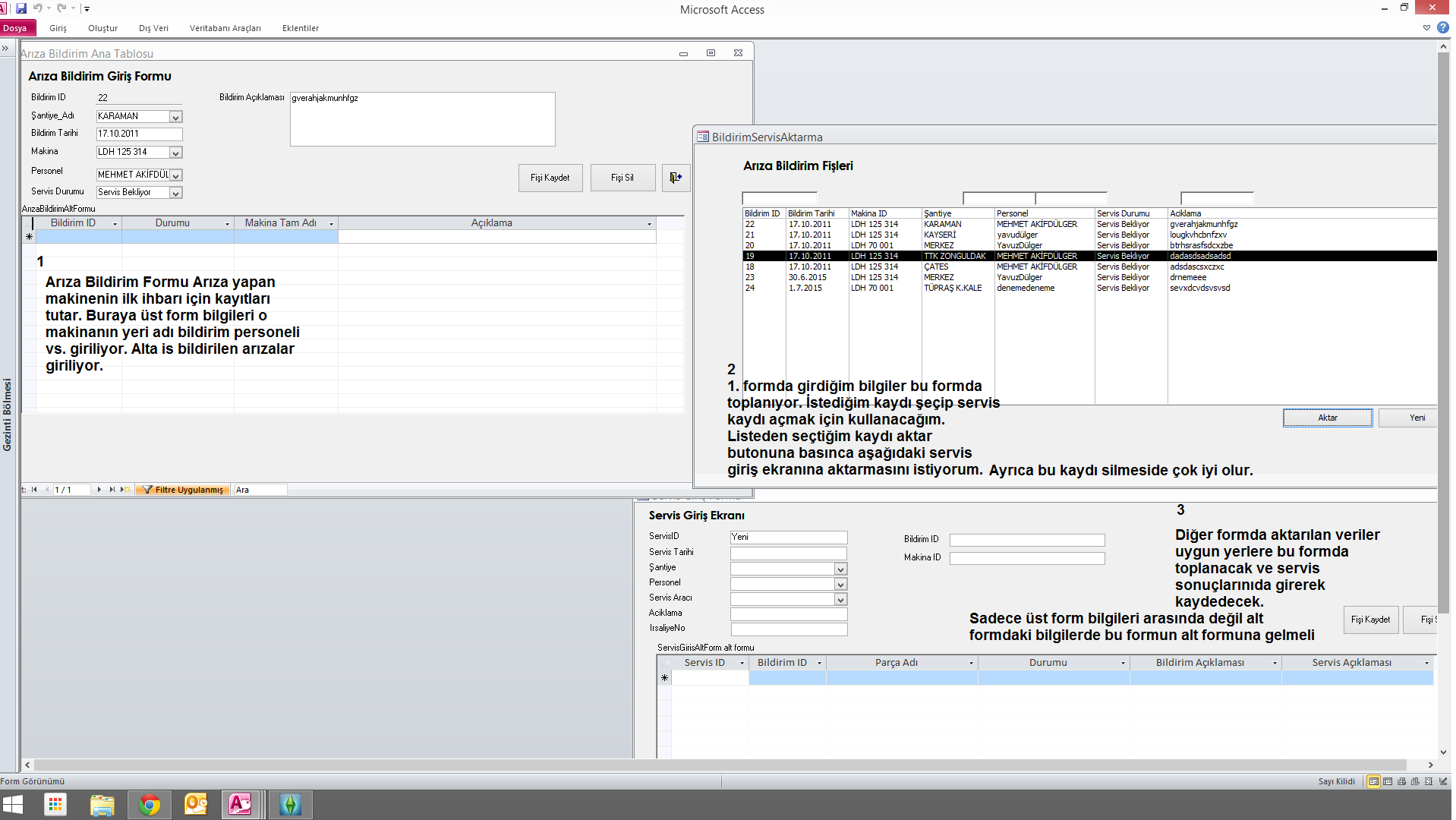 İhtiyacı olan olursa büyük kısmını hallettim kodlamanın, form ve tablo isimleri benzer olduğu için yanlış yazılmış: kodu şu şekilde yaptım: