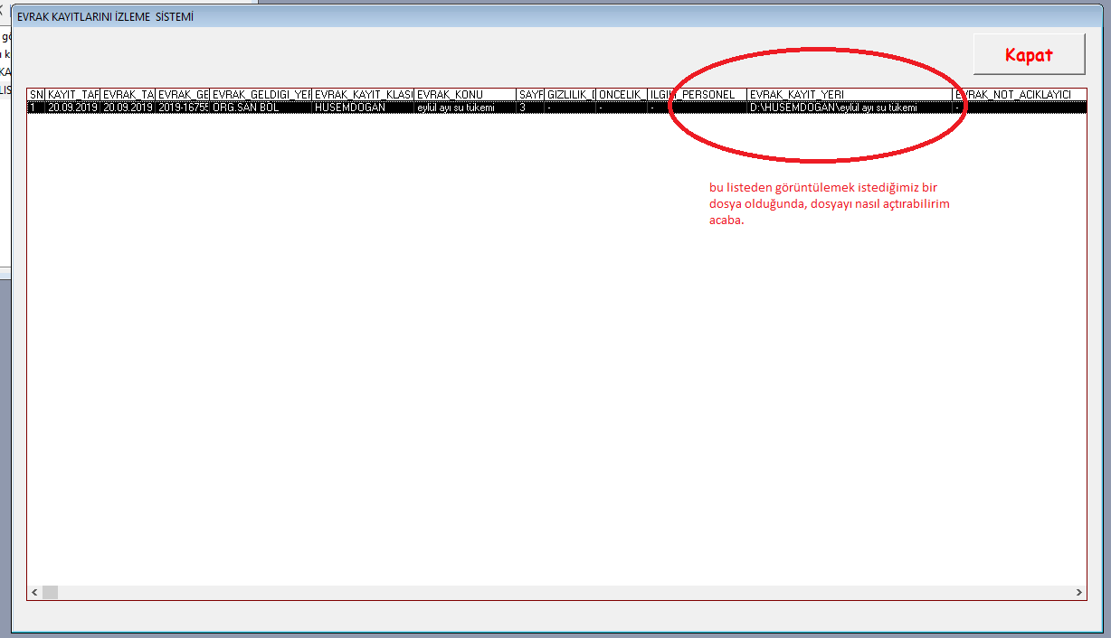 belirlediğimiz isimle klasöre taşınan dosyayı EVRAK LİSTELE formundan bulup, çift tıklayarak nasıl açtırabilirim acaba.