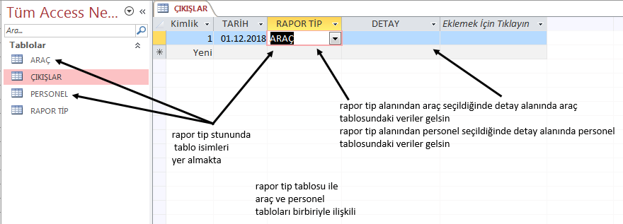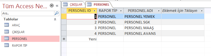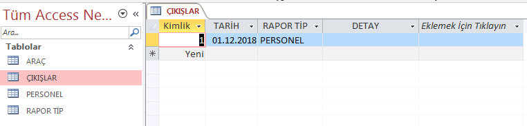 BU TABLO İÇİNDE YER ALAN VERİ DİĞER 2 TABLONUN İSİMLERİ (PERSONEL VE ARAÇ)