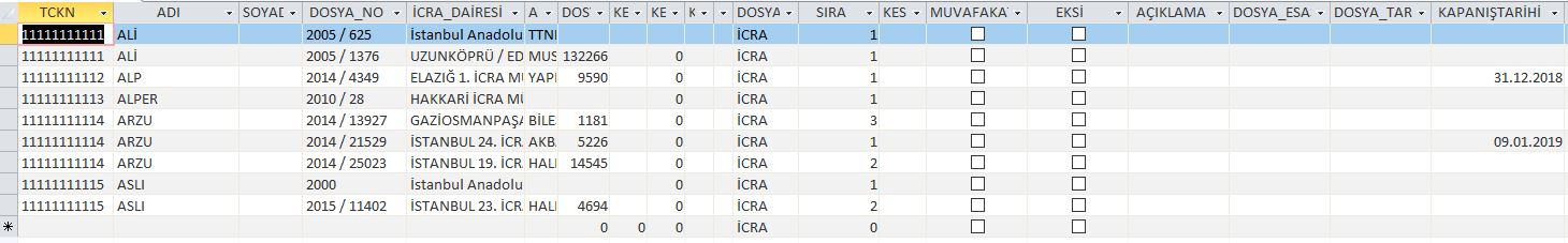 Kapanış tarihi olmayan en küçük sıra nolu dosyayı seçecek bir sorgu yapmak istiyorum.