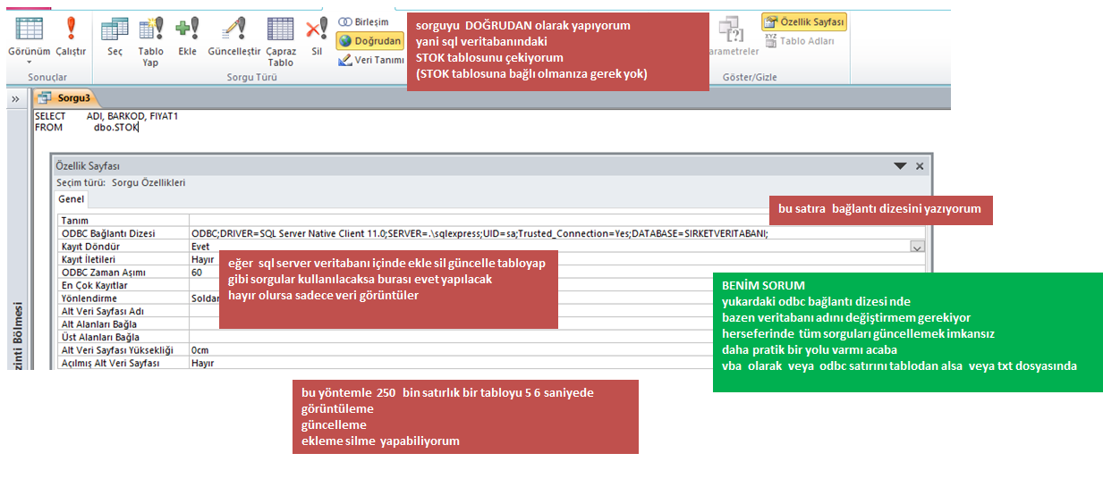 ekle güncelle sil tablo yap gibi sorgularıda access de değil mssql içinde yapıp access den çalıştırabiliriz