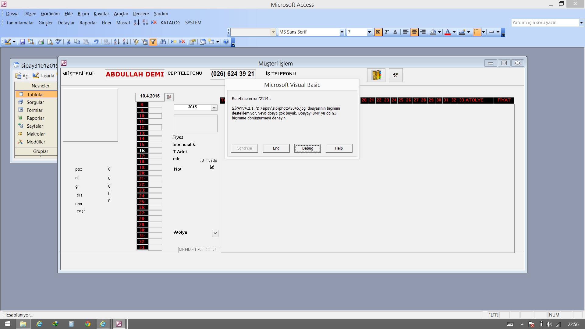 uygulama tamamen çalışıyor sadece jpg dosyalarının tablodan yolunu okumasına rağmen resmini göstermiyor bmp gif vs. format kullanmıyorum.