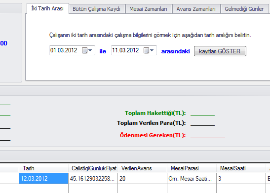 Mesala 10.03.2012 ile 15.03.2012 arasındaki kayıtları görmek istediğimde bana gidip 20.02.2012'deki kayıtları gösteriyor.