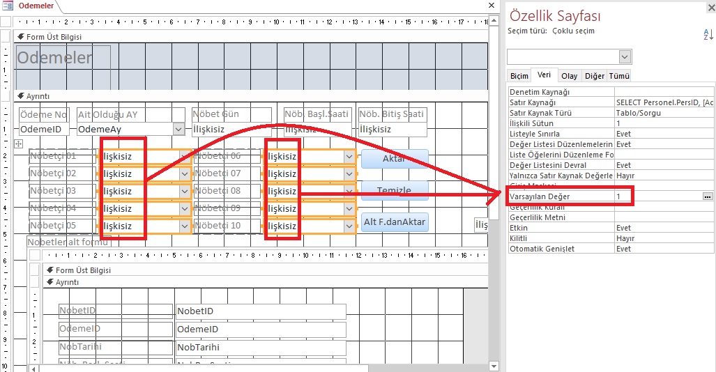 | Tablodaki Alanı Alt Tablodan Alınan Değerle Güncelleme Sorgusu | Lidervet | 7 | 637 |