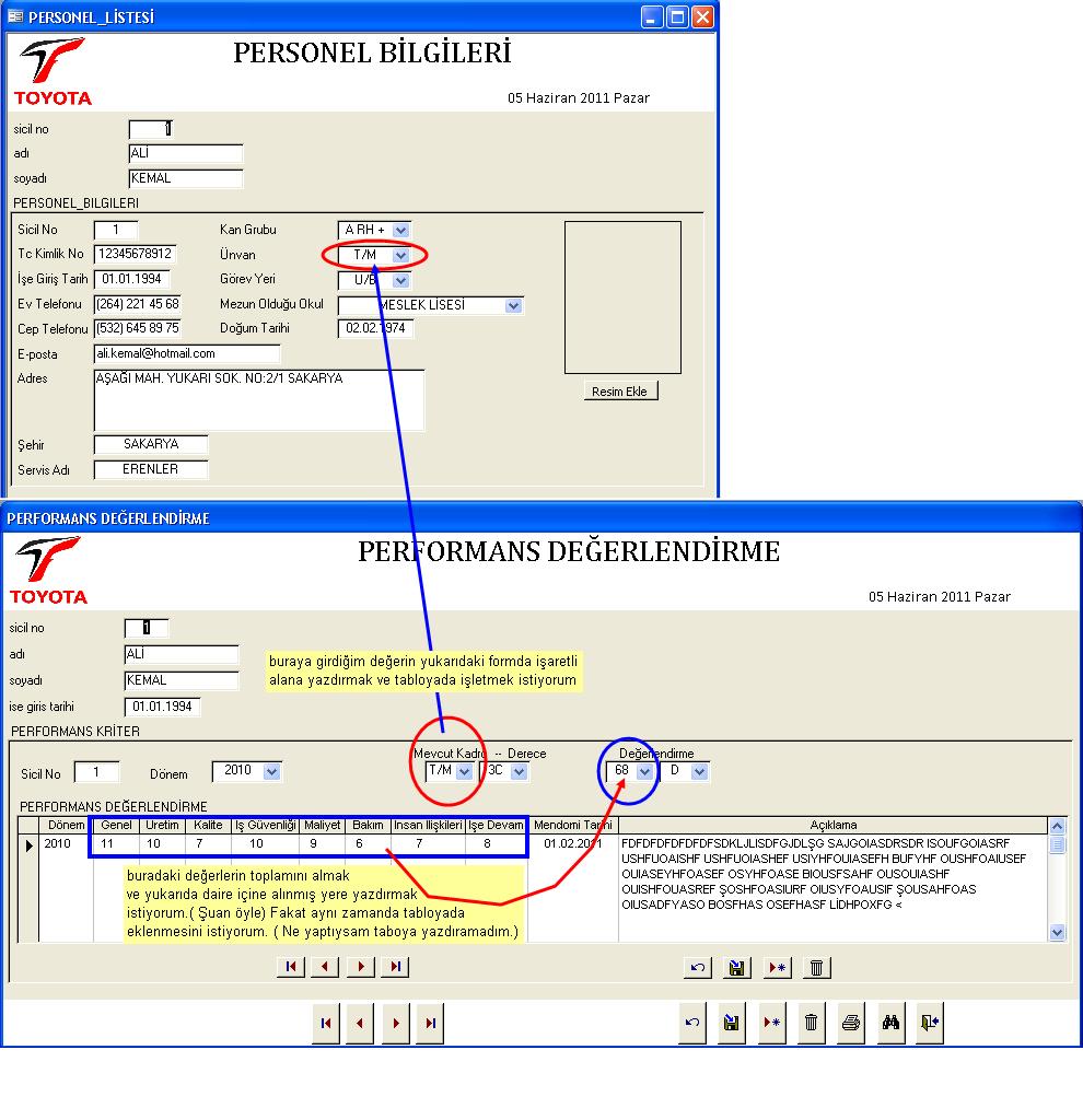 İki problemim var. Birincisi (ekteki resimdede görebilirsiniz) Altformdaki değerlerin toplamını alıp Anaforma yazdırmak ve Anaformun tablosunada işletmek istiyorum. Aslında Altformdaki değerlerin toplamını alıp Anaforma yazdırdım ama Anaformun tablosuna işletmeyi başaramadım.
