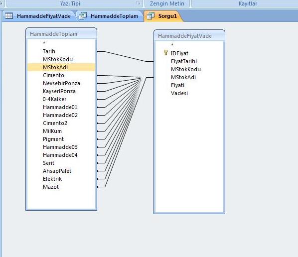 Soru yapilma adimlarini tarif ettigimiz gibi yapabilirsiniz. Eslestirme esnasinda tablo alan maskelerini ayni olmali veya kaldirilmalidir.