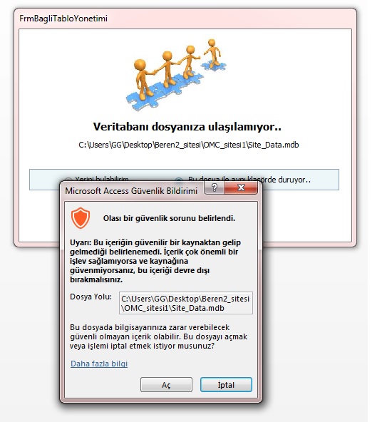 1. yapmış olduğum programı başka bir bilgisayarda çalıştırdığımda access güvenlik uyarıları çıkıyor. bu uyarıların her seferinde çıkmaması için yapılan programın içine kodlar ekleyerek çıkmamasını sağlayabilirmiyiz?