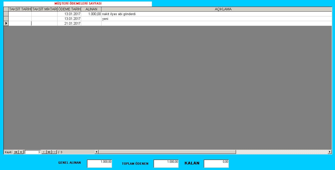 ben sadece resimdeki müşterinin ödemesi olan 1000 tl yi tarihiyle birlikte nasıl diğer yeni açtıgım kasa hareketleri formuna nasıl atabilirim. bilgi verirmisiniz