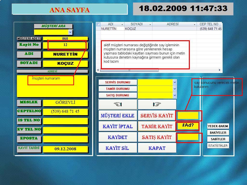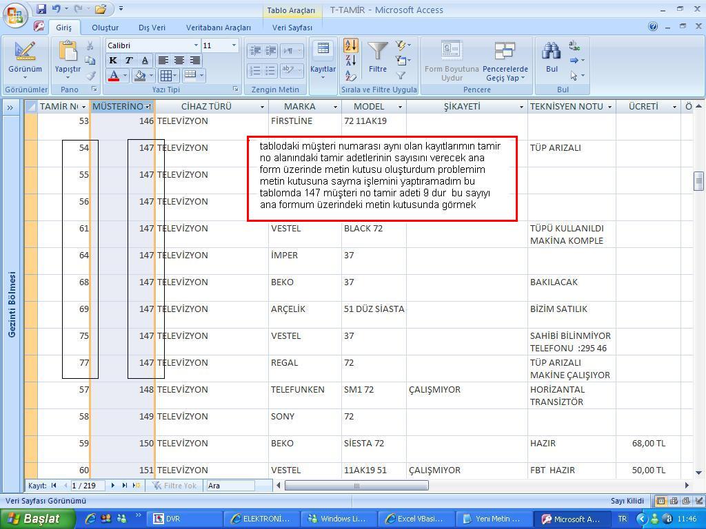 teşekkür yardımın için fakat sayması gereken formdaki aktif MÜSTERİNO baz alarak tamir tablomdaki aynı MÜSTERİNO taşıyan tamir no adetleri