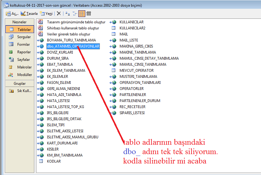 odbc bağlantıyla kullanılan programda sql tabloları bağlandığında tablo adının başına "dbo_" adı ekliyor. ben bu dbo_ kısmını tek tek kaldırmaktayım. Bu işlemi tasarlanacak bir form üzerinden kod ile yapma imkanı olabilir mi acaba?