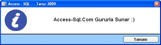 access çıkışta mesaj verdirmek